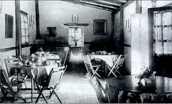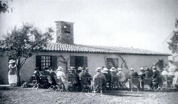 About 1921 artist-architect Jo Mora has contracted by Fr. Menstres to rehabilitate and expand the adobe. The remodeling of the Orchard House included a large fieldstone chimney by stonemason Juan Martoral, refurbished tile roof, new brick floor, garden patio doors and replastering. The kitchen and bathroom were located in the adjacent Machado-Tevis House. Fr. Menstres original intention was to use the home for visiting dignitaries to the mission, but now that it was all prettied-up, Clarabel Haydock Zuck (Carmel's first female mayor) and Mary M. Smith convinced him to sell them the 2.5 acre property in 1924 which they would open as the Mission Tea House. This popular Carmel dining spot served lunch, afternoon tea and were known for their tasty chicken enchilada dinners. The onset of the Great Depression, beginning with the Wall Street Crash of 1929 forced its closure.